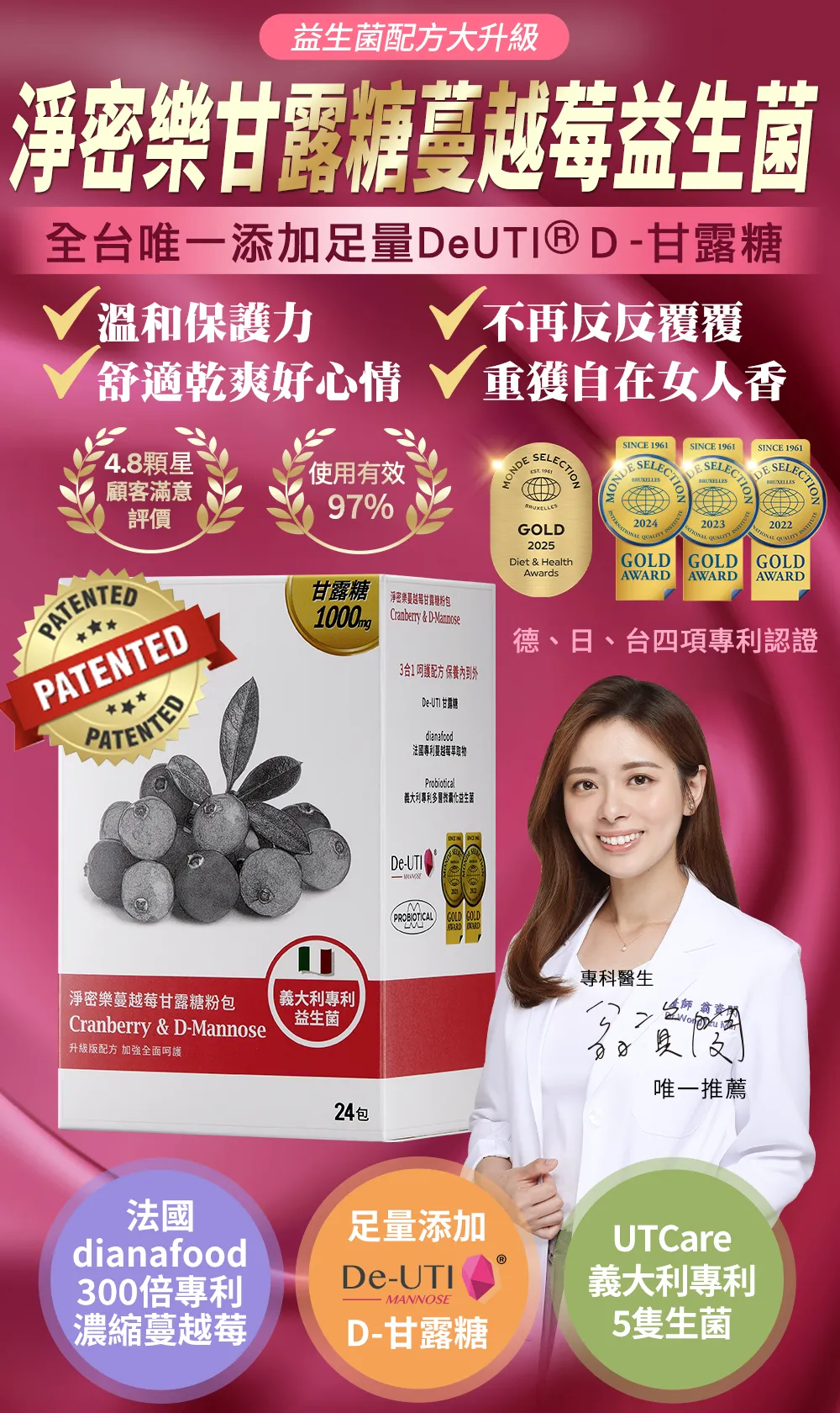 搭配法國專利蔓越莓,杜邦專利益生菌