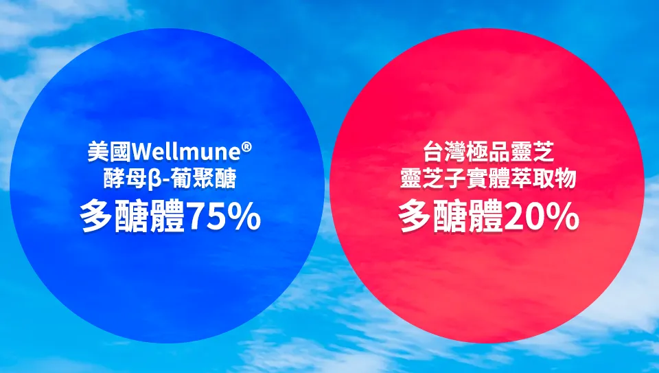 產品採用台灣靈芝子實體萃取精華 + 美國Wellmune®酵母β-葡聚醣